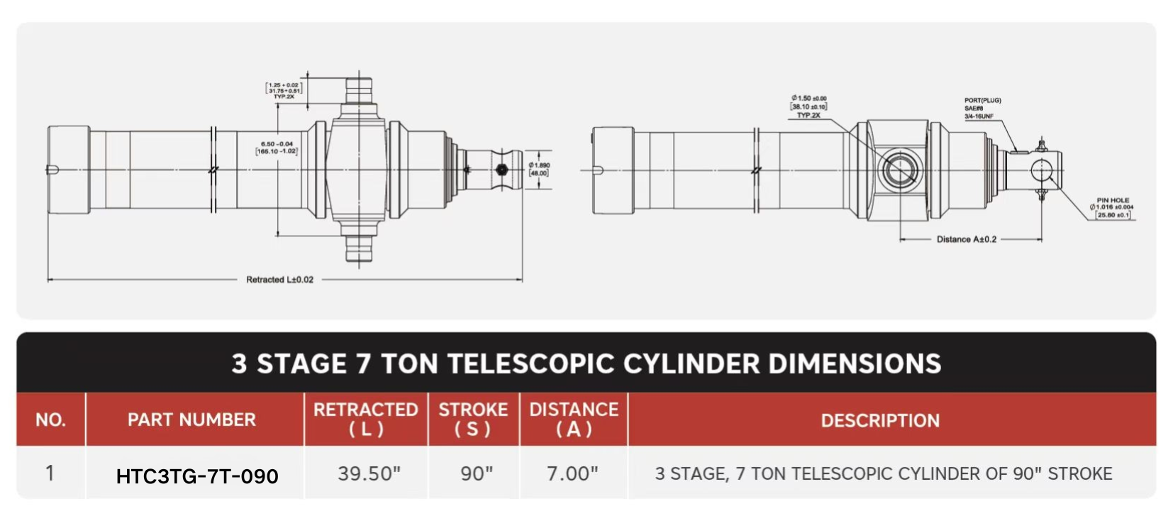 "HTC3TG-7T-090", 3 Tempus, 7 Ton Of 90" Stroke cylindrici Telescopici
