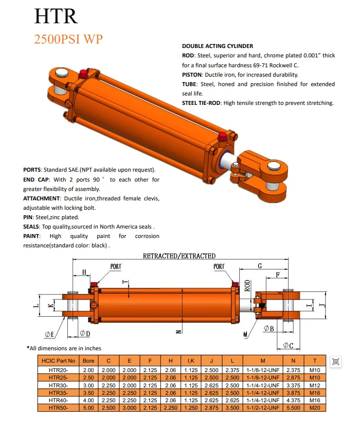 Hoc HCIC Latin Clevis iuncta Cylinder habet 4" boream, unam 36" ictum, et 2" diametrum virga. Geminus-Agens SAE 8 (-08) ORB(F) opus portuum 2.500 PSI maximum opus pressura Clevis aggeris I "inclusum paxillos Glossa nigra est durabilis et flori resistit